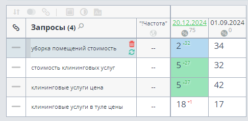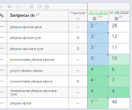 После утверждения подготовленной семантики проект был добавлен в Topvisor с запросами и посадочными страницами
