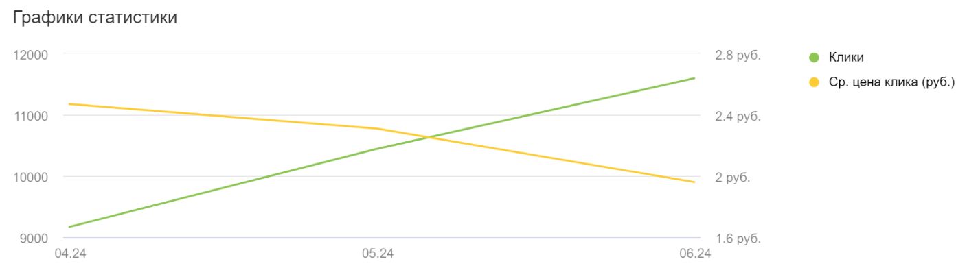 Рост количества кликов на 26,5% при том же бюджете
