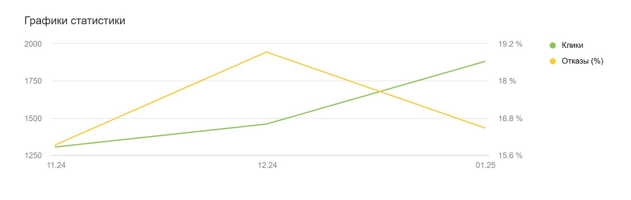 Снижение цены цели на 26.74% и снижение процента отказов по отношению к кликам.