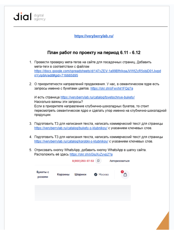 SEO – это не только про поисковые запросы, но и про удобство пользования сайтом. Мы обнаружили, что сайт нуждается в функционале для быстрой связи с пользователями, особенно с мобильными. Поэтому мы предложили добавить кнопку WhatsApp для моментального общения с клиентами. По нашим оценкам, этот элемент повысит уровень обращений с сайта.