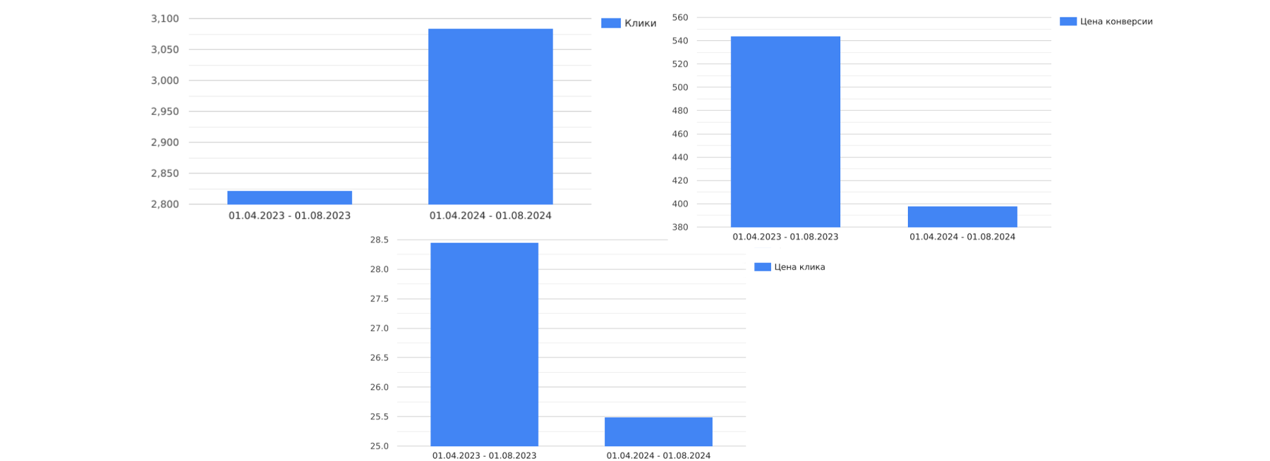 снижение стоимости конверсии ((цели в метрике: заказать звонок, оформление заказа, звонок) на 26,8%